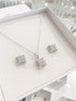 Medidas: Cadena abierta 45 cm largo. Dije 1.8 cm largo x 1.1 cm ancho. Aretes 1.1 cm largo x 1.1 cm ancho. Considerado de tamaño chico.